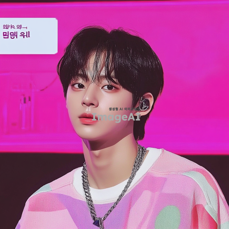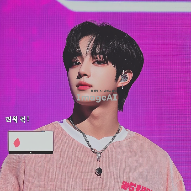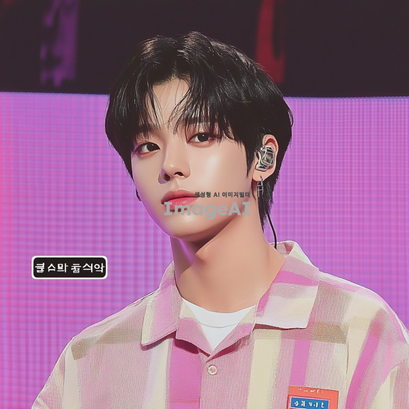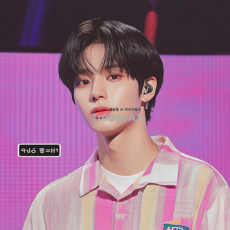 한국 남자 아이돌. 그는 음악 쇼 무대에서 검은 머리를 하고 있다. 짧은 다크 브라운 머리와 둥근 얼굴형, 창백한 피부색, 날씬하지만 마르지 않은 몸매를 가지고 있다. 그는 진지하면서도 귀여운 모습이다.