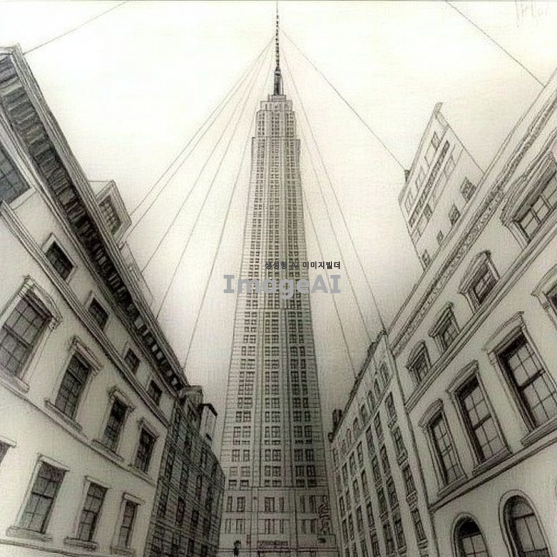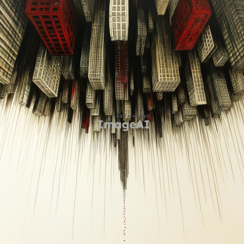 도시의 높은 한 건물을 점을 사용해서 위로 올라갈수록 점진적으로 그려줘