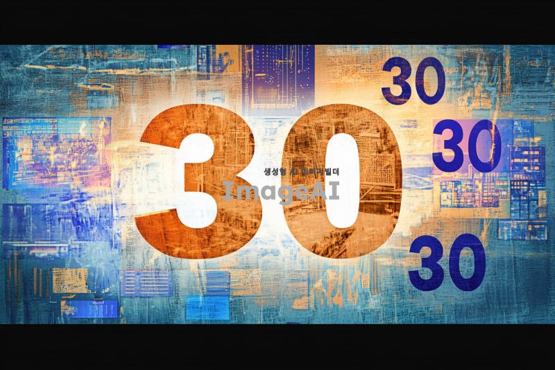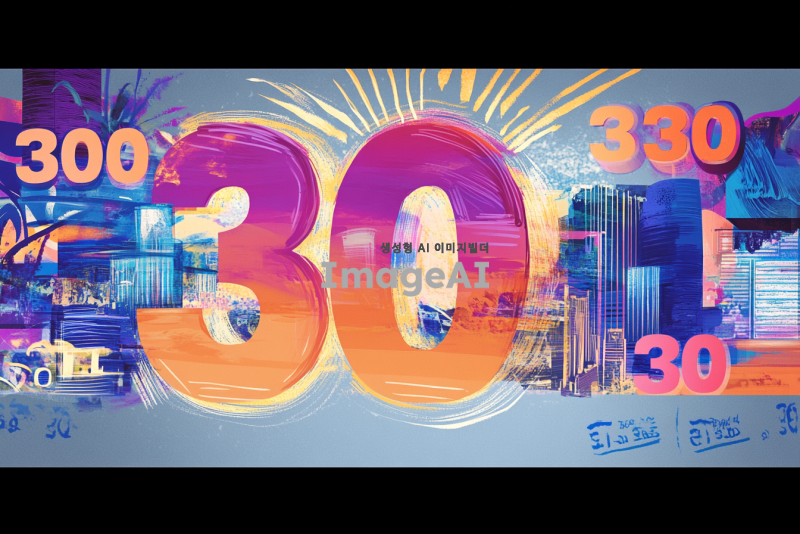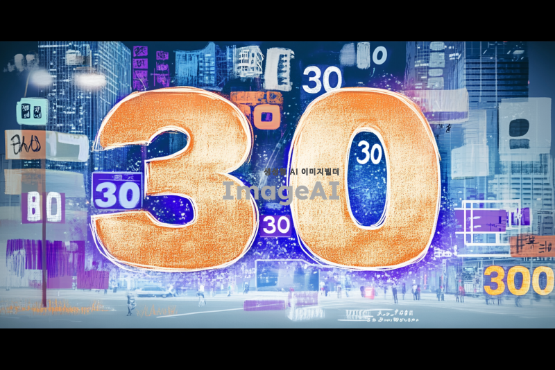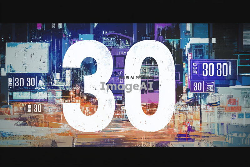 다양한 배경과 스타일에서 "30"이라는 숫자가 중심에 있는 이미지를 생성해 주세요. 예를 들어, 자연 풍경 속의 "30", 도시의 야경 속의 "30", 추상적인 예술 작품 속의 "30", 그리고 다양한 문화적 요소가 담긴 "30"을 포함한 이미지를 원합니다. 각 이미지는 독특한 색상과 조명 효과로 강조되어야 하며, "30"이라는 숫자가 눈에 띄게 표현되도록 해주세요.
