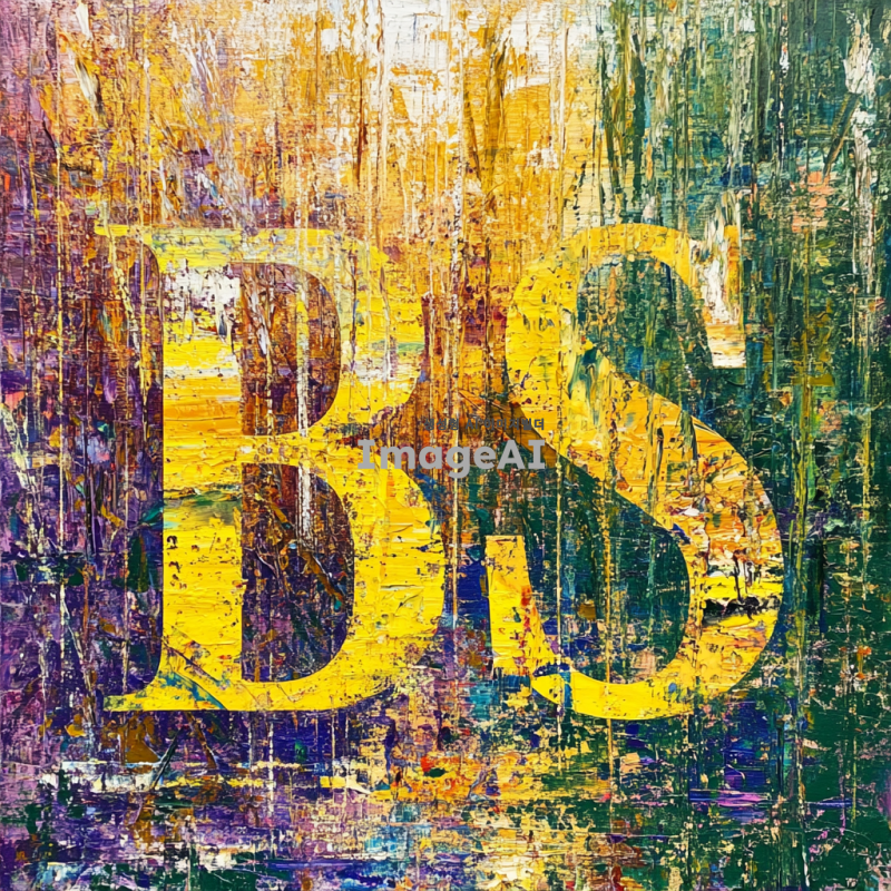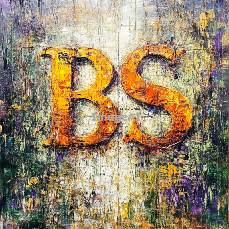 도화지에 페인트칠한 배경 위에 'BS'라는 글자가 크게 적혀 있는 이미지. 배경은 다양한 색상의 페인트로 화려하게 표현되고, 'BS'는 두드러지게 보이도록 디자인되어 있음. 전체적인 느낌은 예술적이고 창의적이며, 색감이 풍부하고 생동감이 넘치는 분위기.