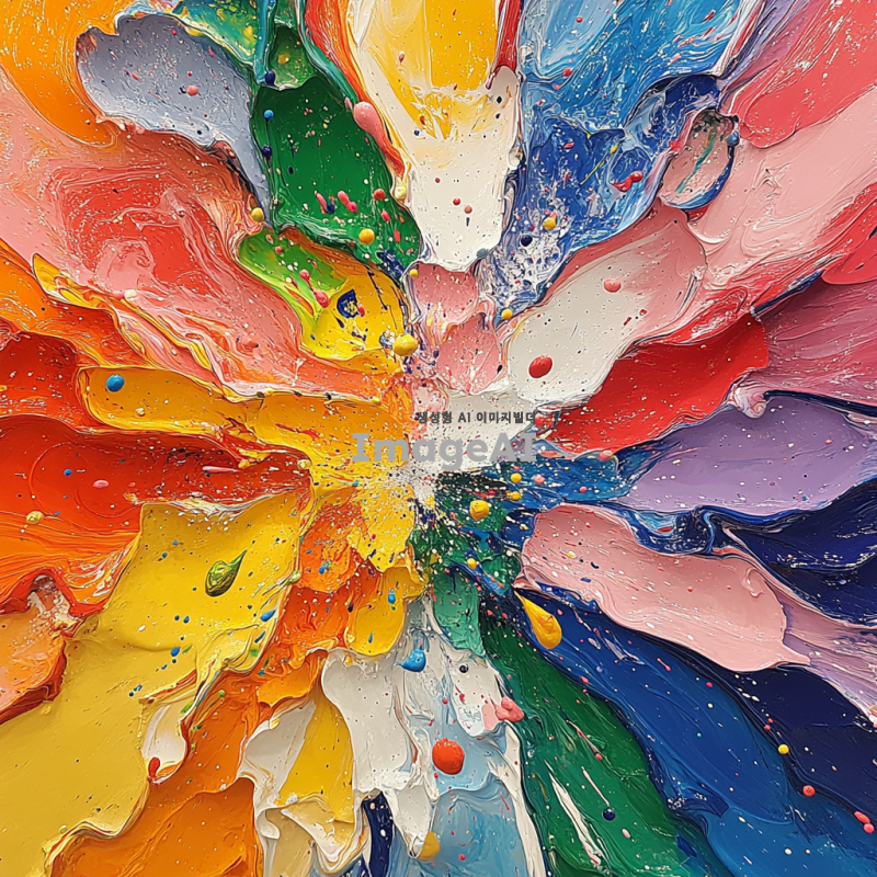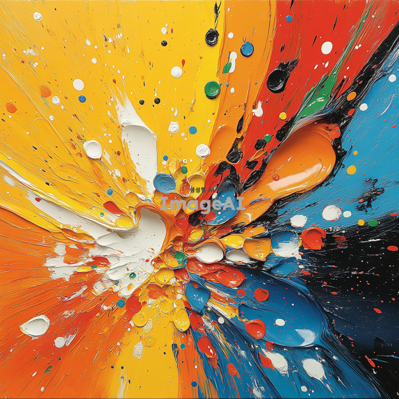 다트를 던져서 형형색색의 물감이 튀어 나오는 예술 작품, 캔버스 위에 다양한 색상의 얼룩과 패턴이 형성된 모습, 다트가 날아가는 순간의 역동적인 장면, 화려한 색조와 추상적인 디자인이 어우러진 미술 작품, 한국의 전통 미술과 현대 미술이 결합된 독창적인 다트 아트, 밝고 경쾌한 분위기의 갤러리 전시회 장면.