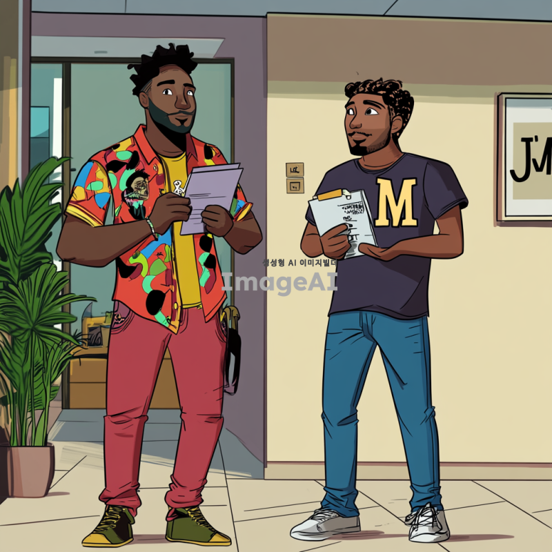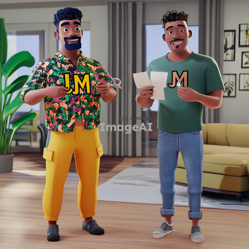 나는 인스타그램에서 부동산 관련 이야기를 할 거야 거기서 가상인물로 임대인 "J" 와 임차인 "M" 의 가상인물이 등장해서 이야기를 풀어갈 거야 여기서 등장하는 임대인 "J" 와 임차인 "M"을 만들어 줘, 어떤 이미지로 그려주냐면은 유투버 고누리에 등장하는 졸라맨 모양을 하고있고 임대인은 얼굴에 "J"만 있고 임차인은 얼굴에 "M"만 있어 각각 임대인, 임차인을 만들어서줘