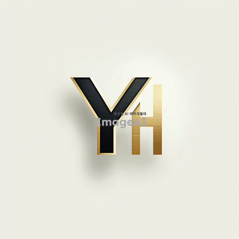 깔끔하고 현대적인 스타일의 'Yh' 로고 디자인. 심플한 폰트로 'Yh'를 강조하며, 고급스러운 느낌을 주기 위해 금색과 검정색 조합을 사용. 배경은 화이트로 설정하여 로고가 돋보이게 하고, 전체적으로 세련된 느낌을 주는 디자인.