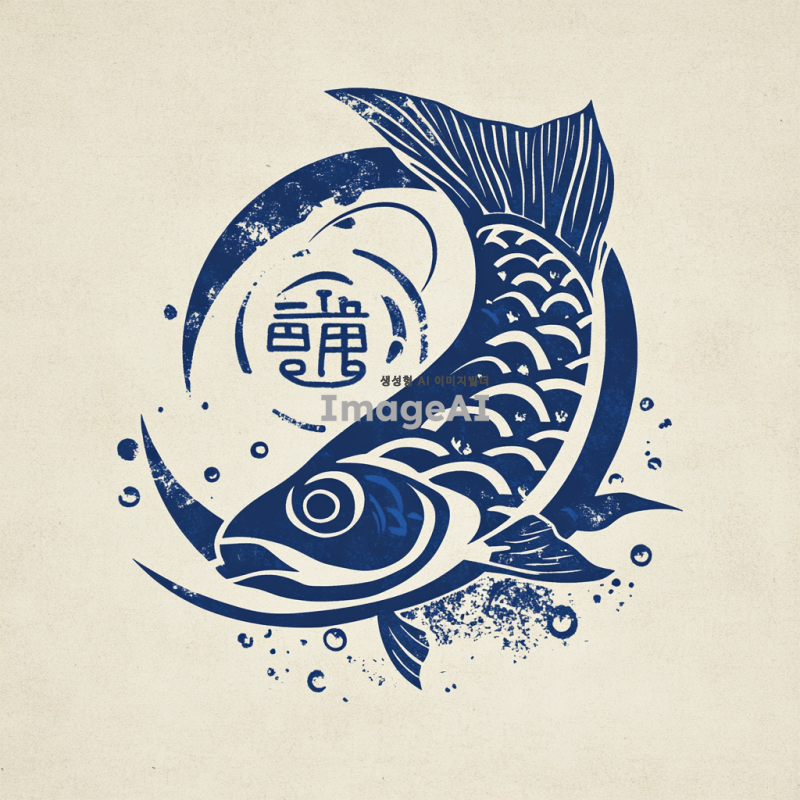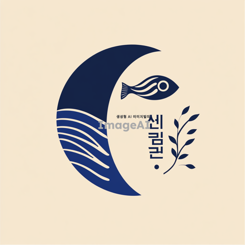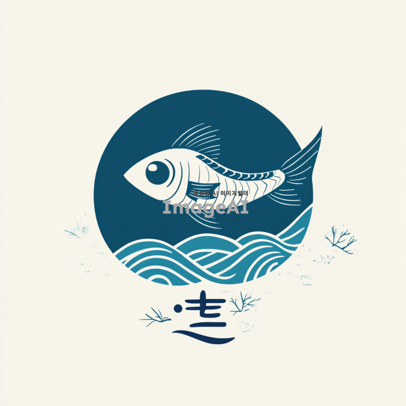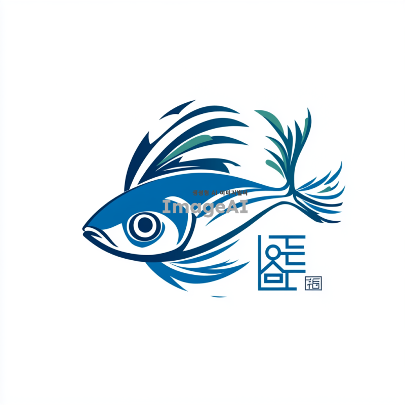 한국 전통의 느낌을 살린 건어물 로고 디자인, 해양을 상징하는 파란색과 자연을 나타내는 녹색을 사용, 간단하면서도 기억에 남는 형태, 건어물의 신선함과 품질을 강조하는 요소 추가, 한국의 전통 문양이나 물고기 이미지 포함, 현대적이면서도 클래식한 느낌의 조화로운 디자인.