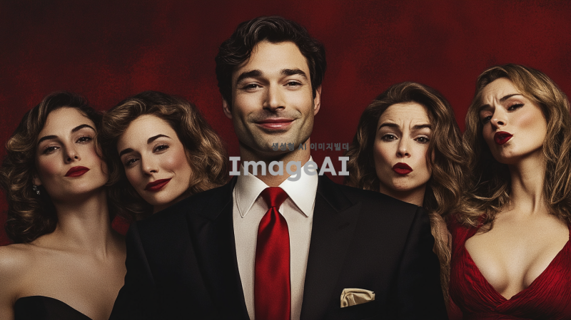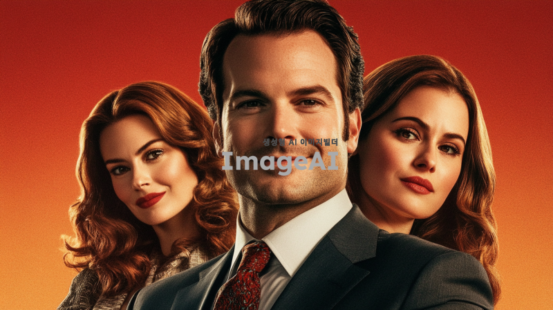 수트를 입고 미소 짓는 백인 남자 한명과 다양한 감정들을 보이는 백인 여자 세명이 등장하는 불륜 미국 드라마 포스터.