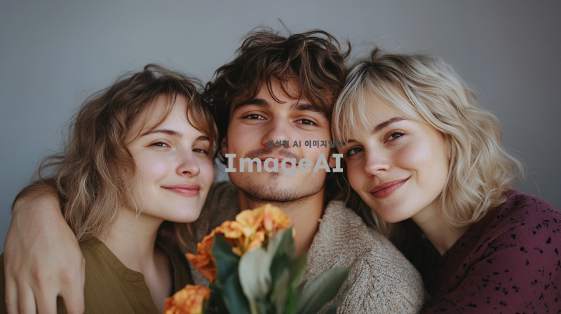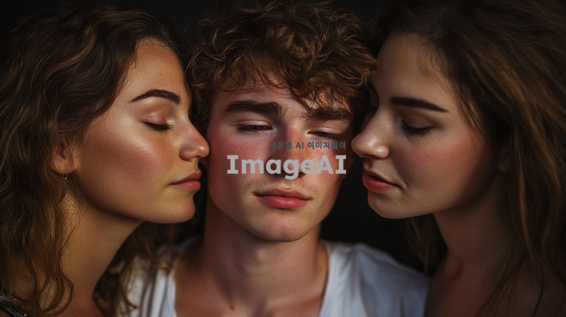 젊고 멋진 백인 남자 1명과 그를 독차지하고 싶은 백인 여자 3명. 감성적이고 차분한 분위기