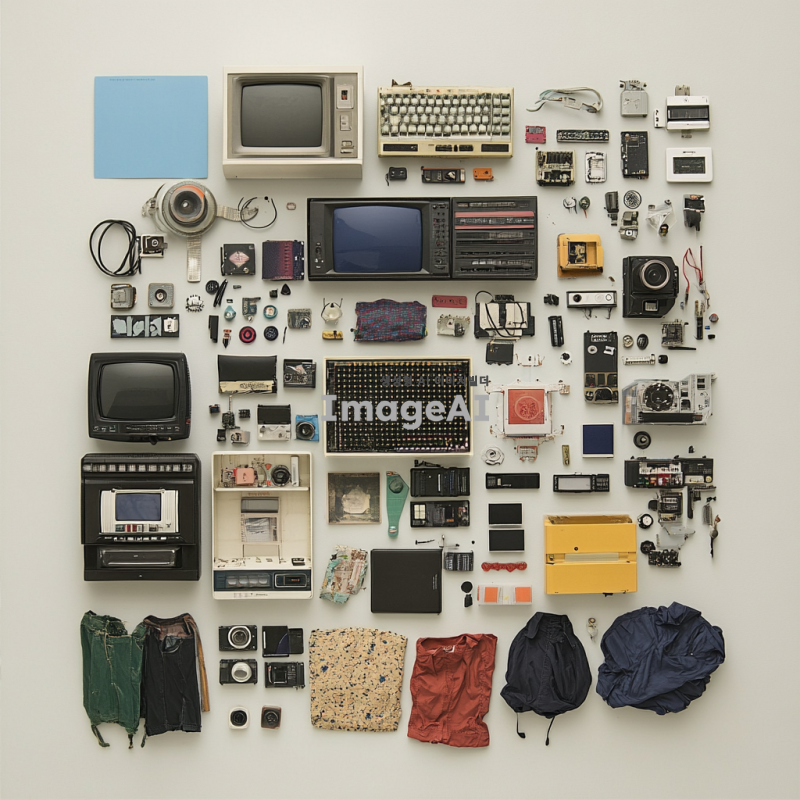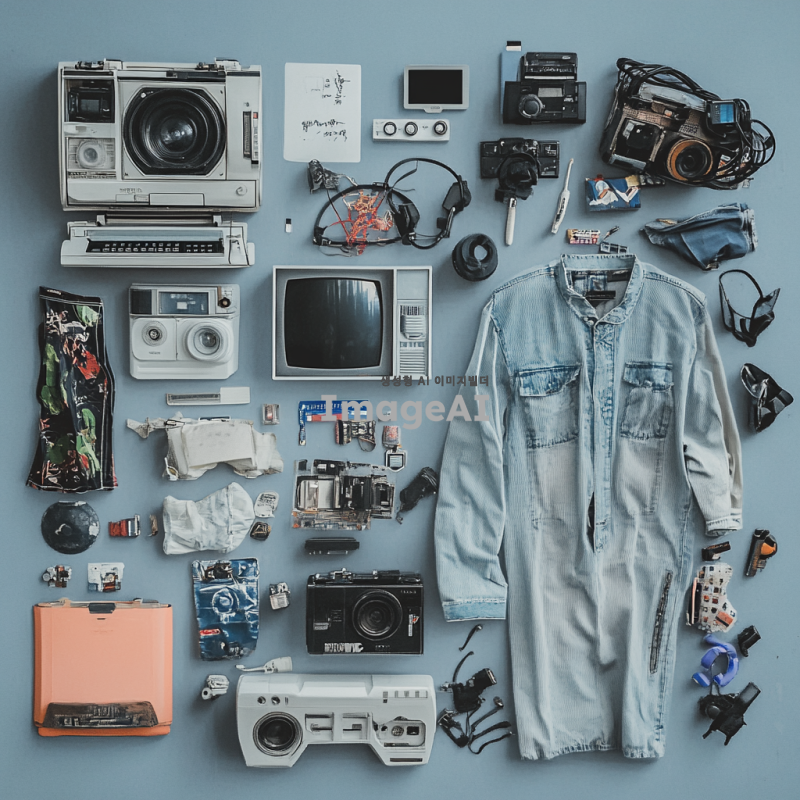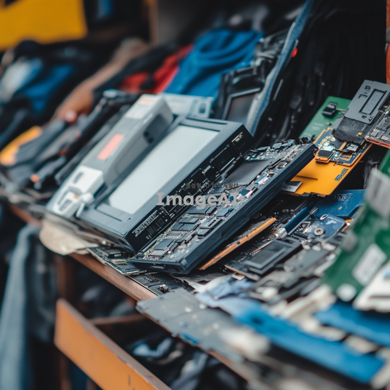 전자기기나 옷이 쌓여있는 쓰레기 더미