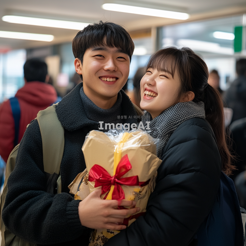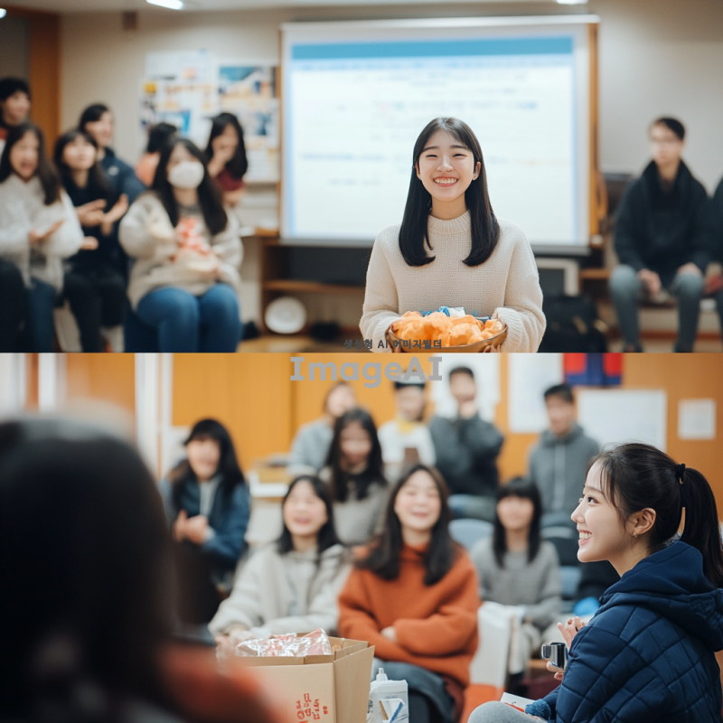 가족과 함께 제주도 여행을 떠나는 모습, 신주아라는 고등학교 1학년 학생이 진로 시간에 승무원이라는 직업 희망을 발표하는 장면, 크리스마스에 받은 선물에 놀라는 표정의 가족, 선배들의 졸업 축하 공연을 지켜보는 모습, 중학교 3학년 때 세계사 시험에서 100점을 받은 후 기뻐하는 장면, 해니라는 친구와의 만남을 기념하는 사진, 민경이와 함께 바다에서 핑크 노을을 감상하는 순간, 크리스마스에 가족과 함께 스키장에서 즐거운 시간을 보내는 모습, 중부대학교 합격 소식을 듣고 기뻐하는 장면, 부산 여행을 떠나는 가족의 행복한 모습.