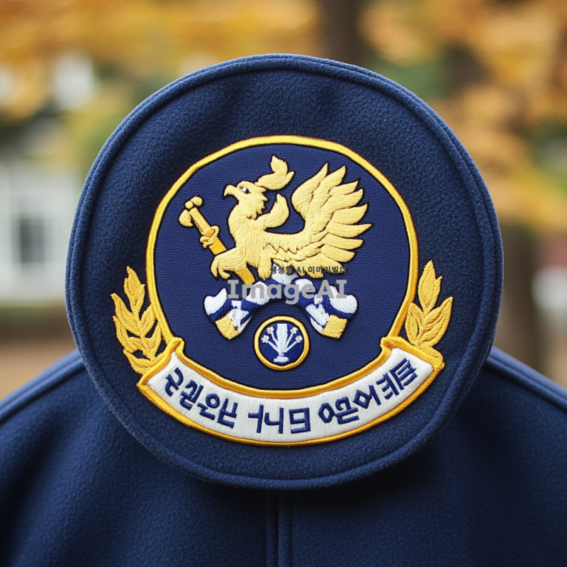 한국 대학생들이 입고 있는 과잠 위에 세련된 디자인의 로고를 그려주세요. 로고는 현대적이고 깔끔한 느낌을 주며, 대학의 상징적인 요소를 포함하고 있습니다. 색상은 학교의 공식 색상을 반영하고, 로고의 형태는 원형 또는 사각형으로, 텍스트와 심볼이 잘 어우러지도록 구성해주세요. 배경은 단순하게 유지하여 로고가 돋보일 수 있도록 해주세요.