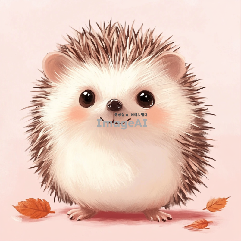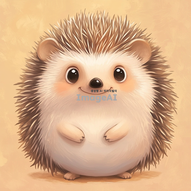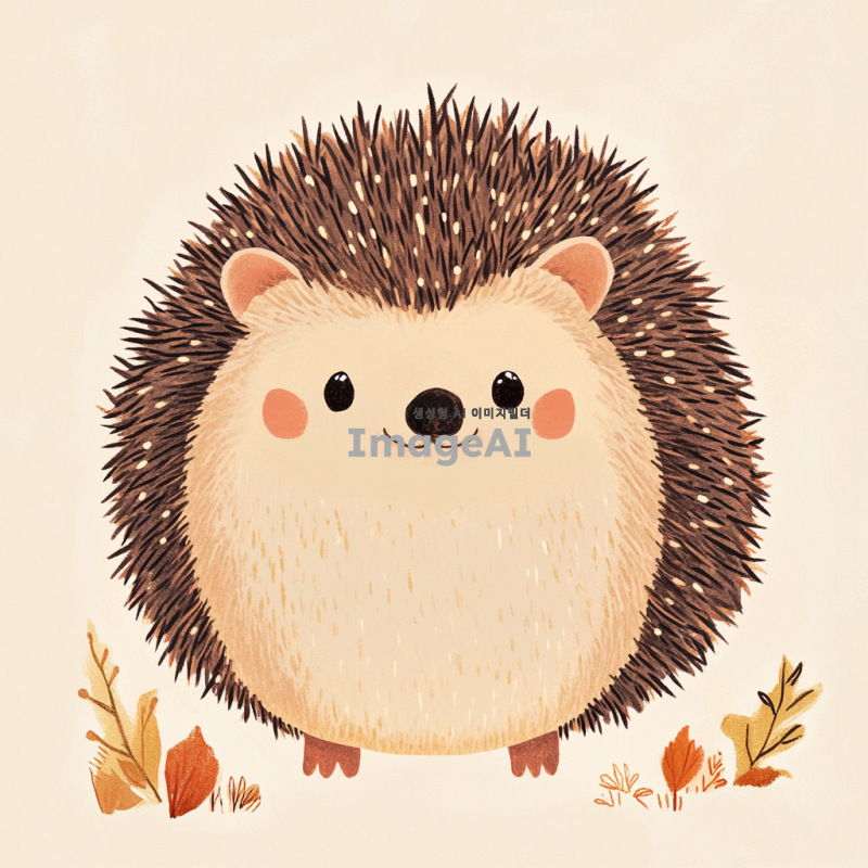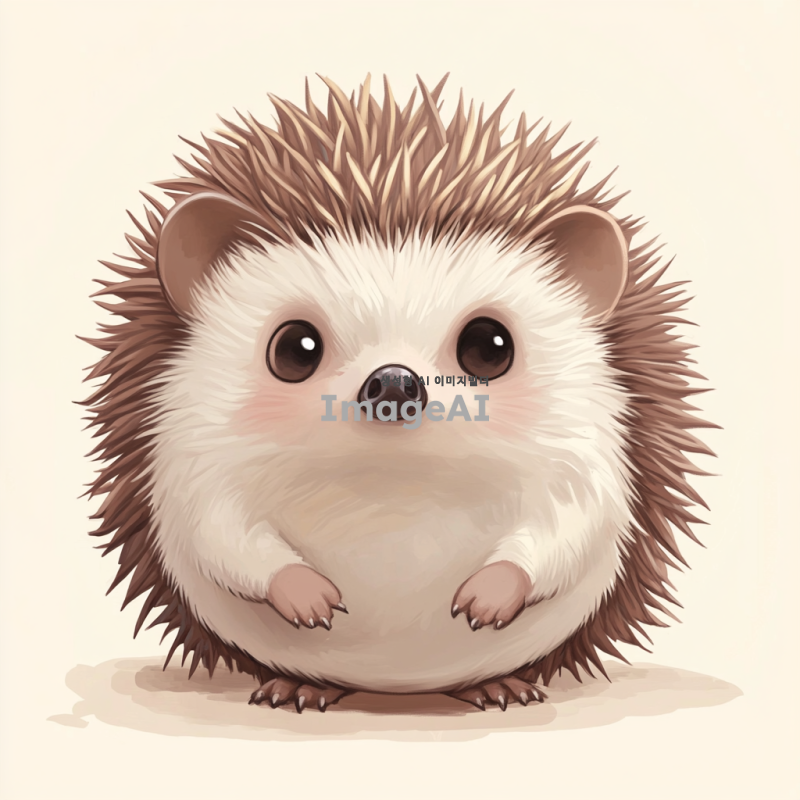 고슴도치가 귀엽고 사랑스럽게 표현된 일러스트, 배경 없이 고슴도치의 특징적인 가시와 둥글둥글한 몸체가 강조된 모습, 세밀한 디테일과 따뜻한 색감으로 생동감을 주며, 한국 스타일의 아기자기한 느낌을 살린 일러스트.