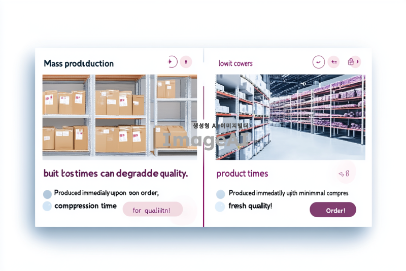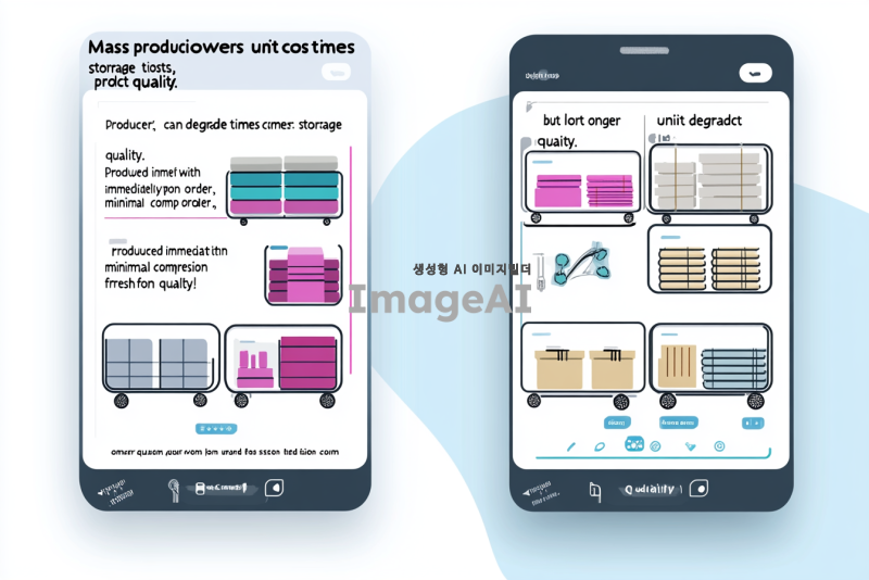 "대량 생산으로 단가는 낮추지만, 보관 시간이 길어 상품 퀄리티가 저하될 수 있습니다."