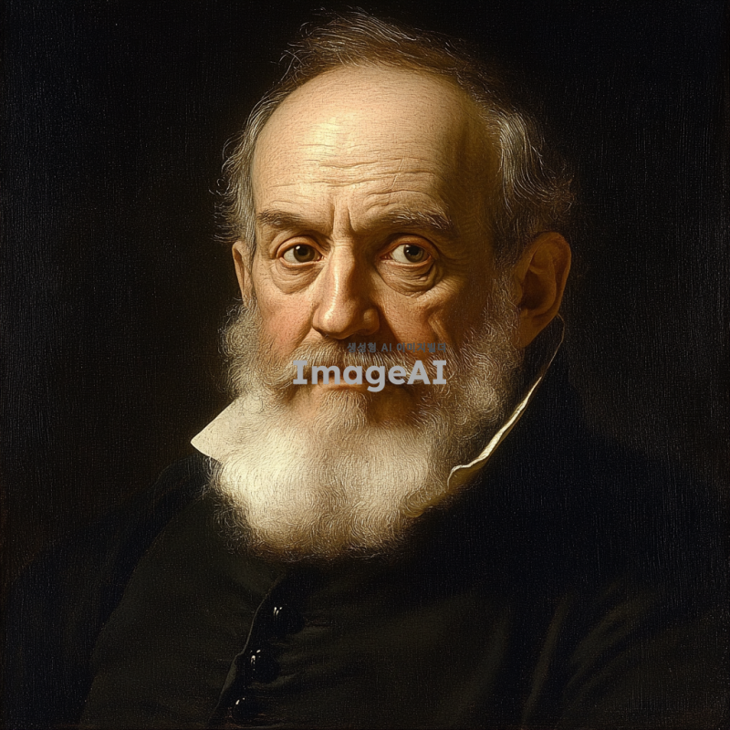 갈릴레오 갈릴레이의 몸으로 얼굴은 머스크가 나를 쳐다보고 있다