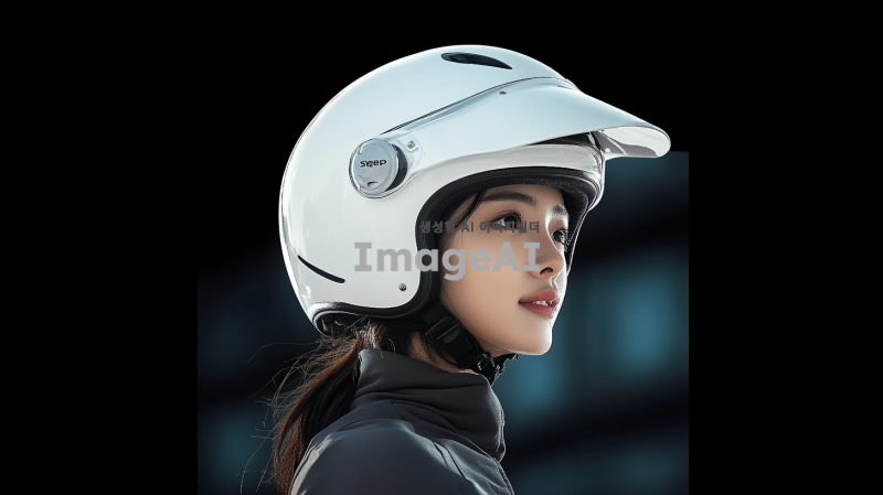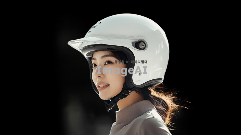 첨부한 sweg rs10 흰색 오픈페이스헬멧을 착용한 한국 여성, 도시 배경, 밝은 색상의 헬멧, 활기찬 표정, 자연광이 비치는 환경, 편안한 운동복을 입고 있는 모습, 역동적인 자세, 건강하고 활동적인 느낌
