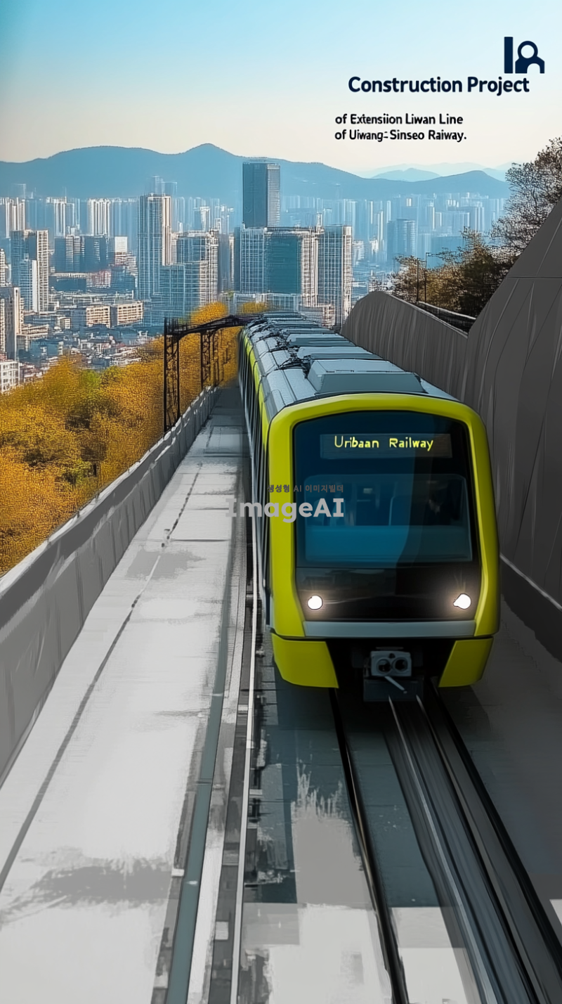 '우이신설 연장선 도시철도 건설공사' 라고 써있는 A4사이즈의 표지를 도시철도 관련된 이미지를 넣어서 만들어줘. 기업에 어울릴만한 디자인이어야 하고, 너무 흔한느낌이면 안돼.