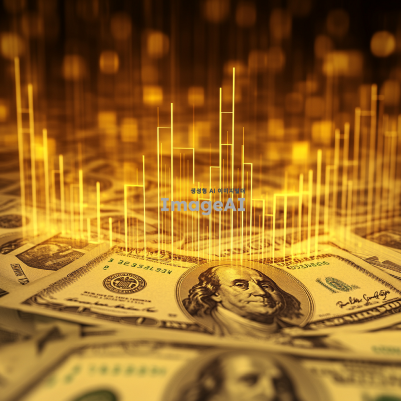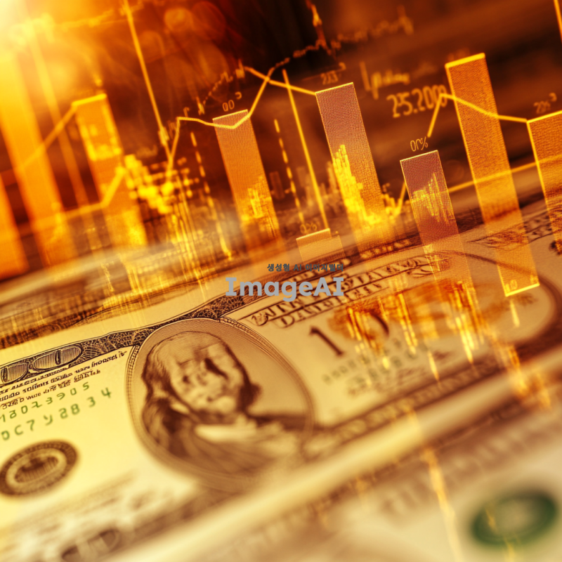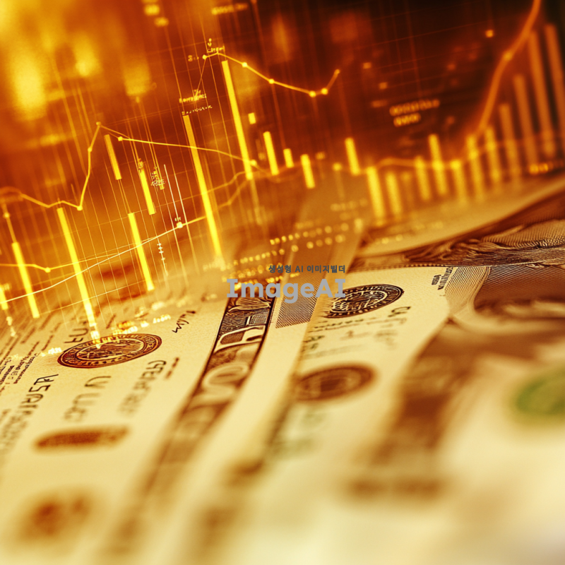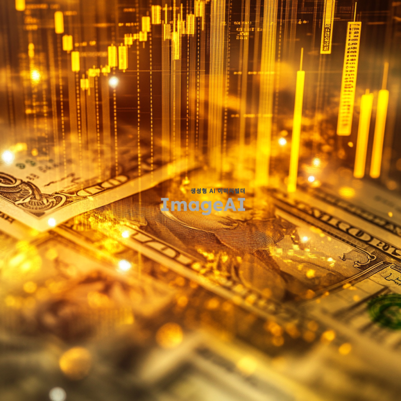 세금관련된 문구와 이미지 배경으로 돈들이 있고 상승하는 그래프가 있는 이미지 금색이 많이 들어간 분위기