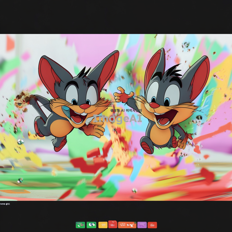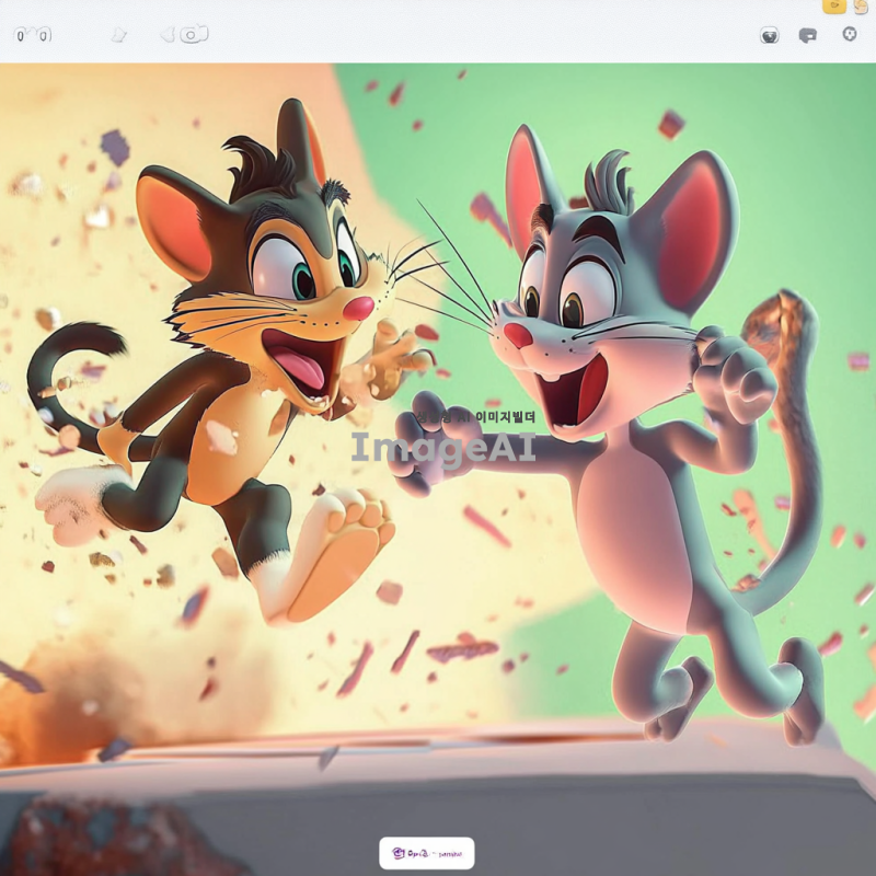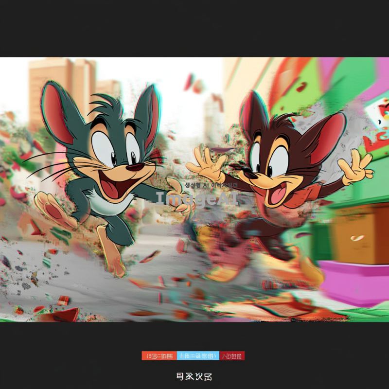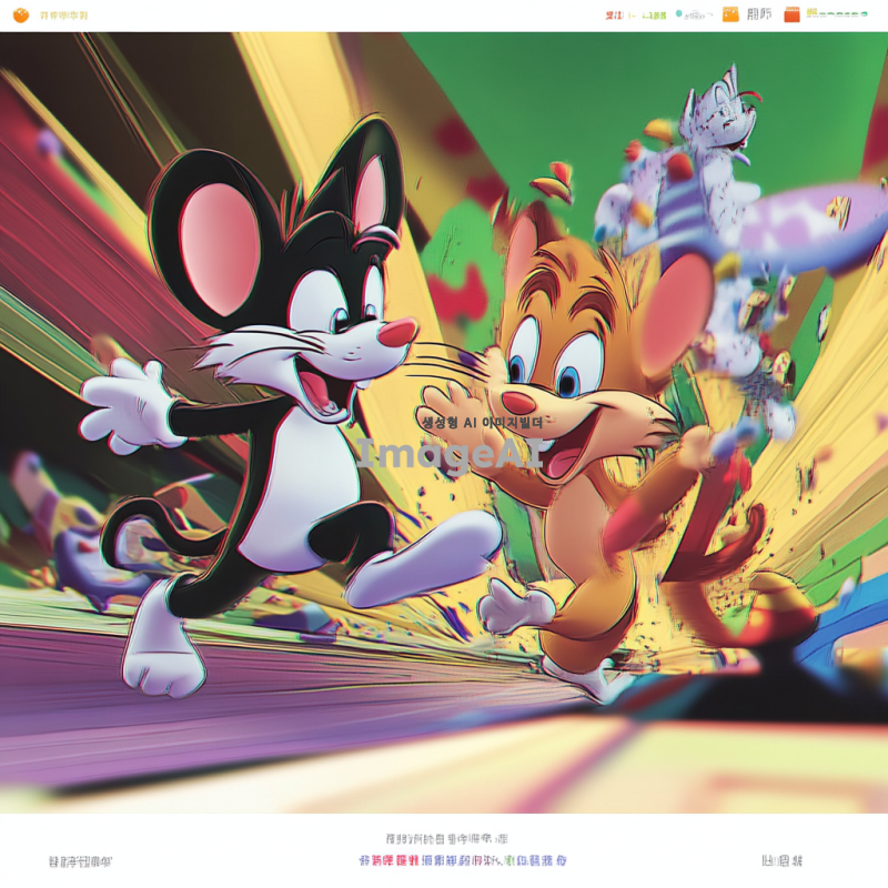 톰과 제리가 입체적으로 표현된 장면, 톰과 제리가 서로 쫓고 있는 모습, 생동감 넘치는 색감과 디테일, 유머러스한 표정과 동작, 입체적, 3D