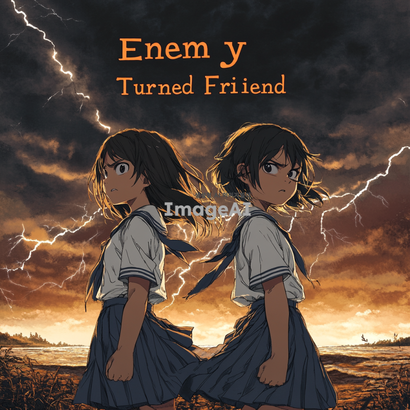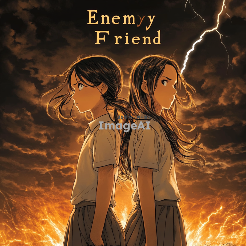 책표지 그림좀 그려줘 책 제목은 적이 되어버린 친구야 여자2명이 (초등 5) 가 복수하는 이야기야