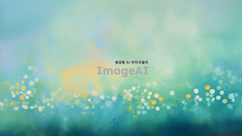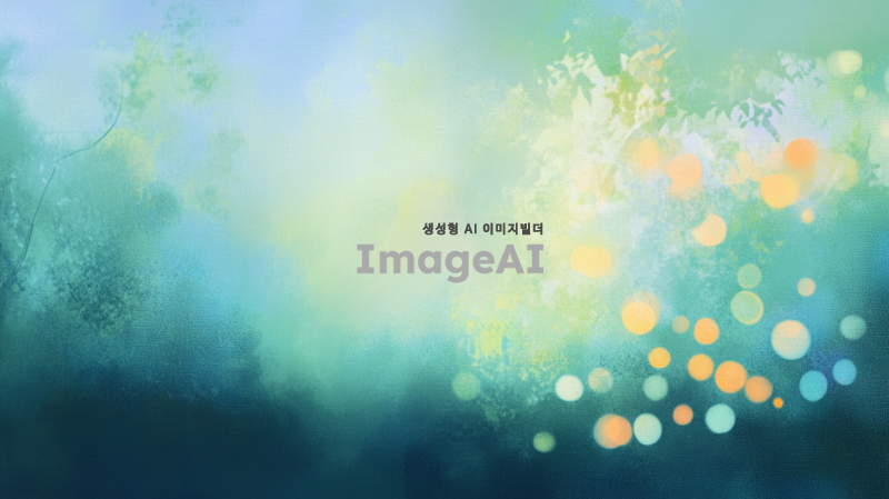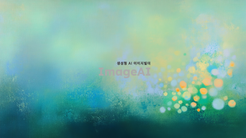 흐릿하고 초점이 맞지 않은 배경에 애매랄드색과 초록색의 힌트가 있는 장면입니다. 전경에는 노란색, 흰색, 청록색등의 작은 원들이 있는 추상화가 있습니다. 스타일은 부드럽고 꿈같아야 하며, 차분함과 평온함의 감정을 불러일으킵니다.