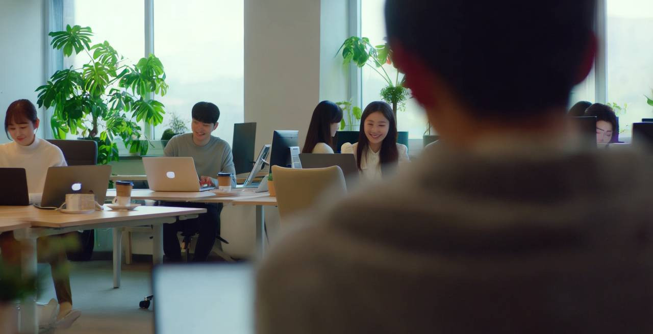 현대적인 사무실 내부, 넓은 창으로 자연광이 부드럽게 들어와 공간을 밝히고 있다. 창 밖으로는 고층 건물들이 보이며, 하늘은 맑고 푸르다. 사무실 내부는 세련된 가구로 꾸며져 있으며, 책상 위에는 노트북과 커피잔이 놓여 있다. 주변에는 녹색 식물이 배치되어 있어 자연스러운 분위기를 더한다. 조명은 따뜻한 톤으로, 공간 전체에 아늑한 느낌을 준다. 카메라는 천천히 팬 샷으로 공간을 가로지르며, 사무실의 평화로운 분위기를 강조한다. 한국인 직원들이 각자의 자리에서 집중하여 일하고 있는 모습이 보인다. 그들의 표정은 편안하고 만족스러워 보이며, 서로 간간이 미소를 주고받는다.