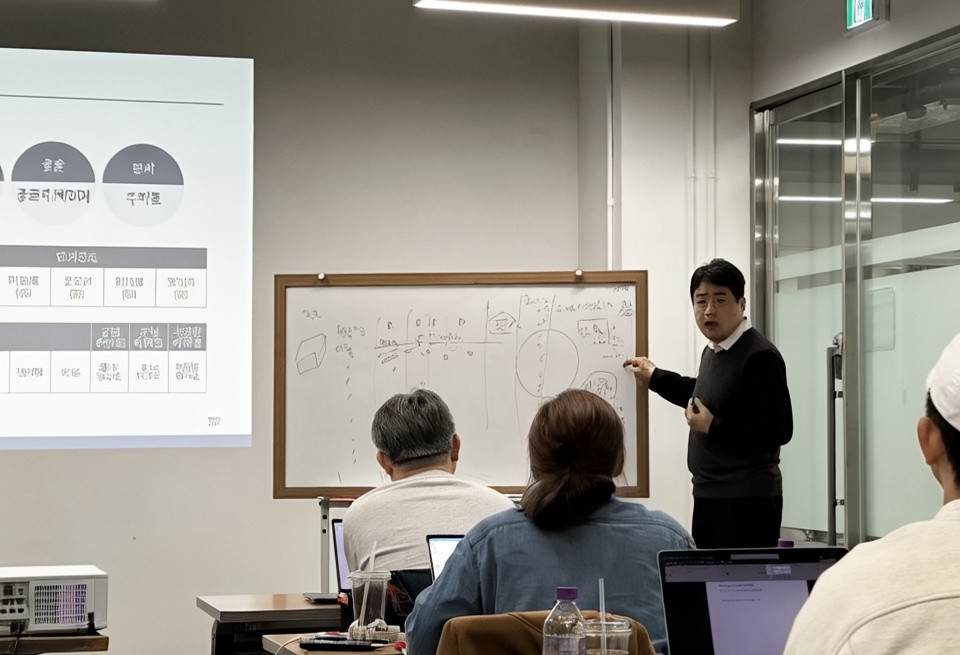 한 남자가 청중 앞에서 강의하는 사진을 동적인 영상으로 만들어주세요. 유튜브 인트로 영상으로 사용할 수 있도록 자연스럽게 움직임을 추가해주세요. 남자가 말하며 제스처를 강조하는 듯한 동작을 부드럽게 애니메이션화하고, 청중은 고개를 끄덕이거나 약간씩 움직이며 강의에 집중하는 모습을 보여주세요. 카메라가 강사에게 서서히 줌인하며 전문적이고 영감을 주는 분위기를 연출해주세요. 자연광과 따뜻한 톤을 사용해 장면의 생동감을 더해주세요.