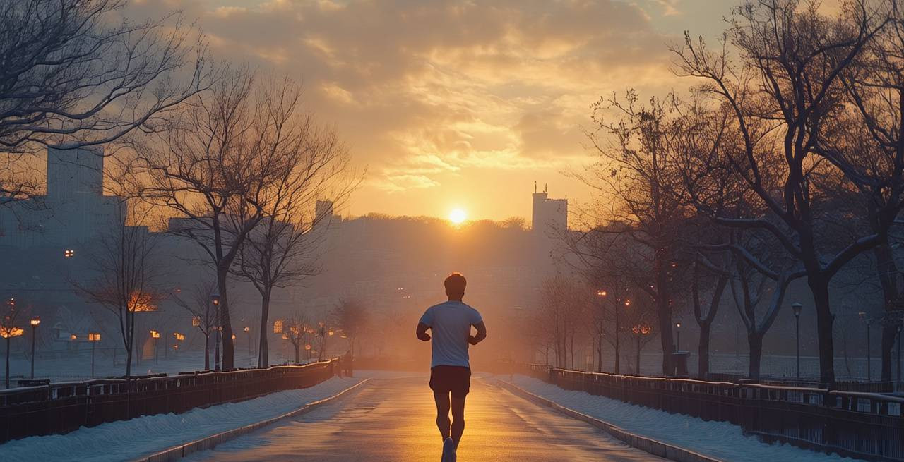 열심히 땀흘리며 뛰는 인물을 옆에서 촬영한 장면. 마지막에 카메라는 멈추고 인물은 앞으로 뛰어가며 뒤에서 촬영.