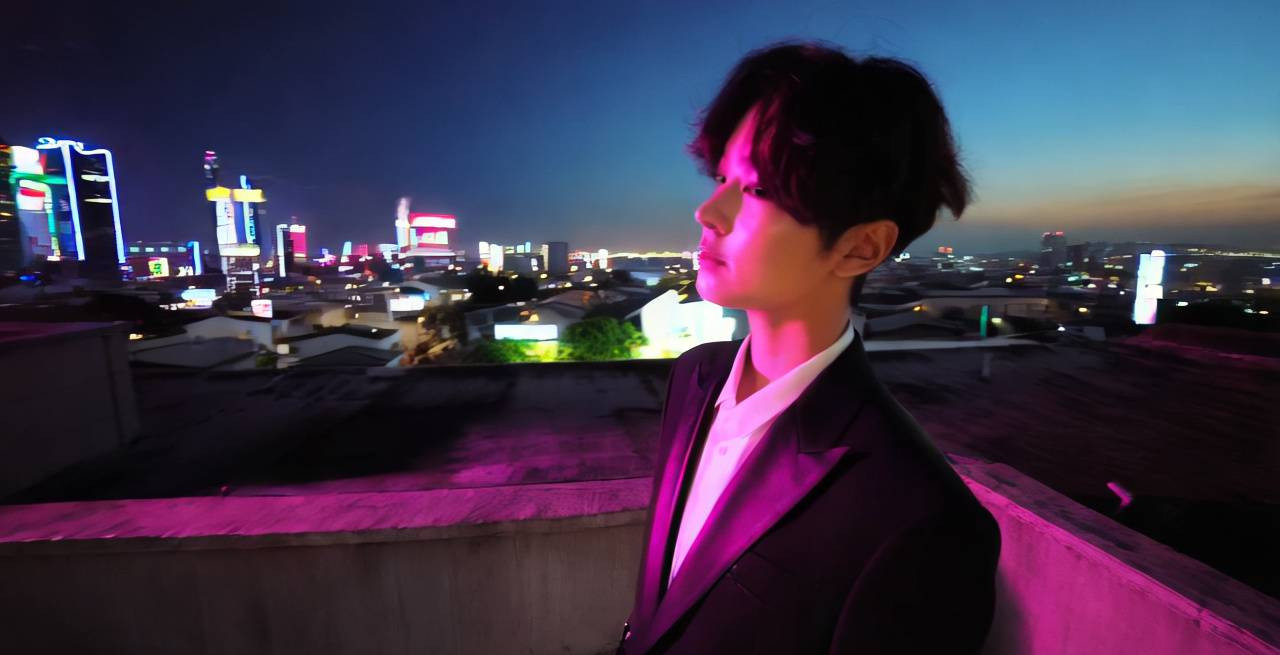 도시의 화려한 야경을 배경으로, 빌딩의 옥상에서 한국인 모델이 세련된 정장을 입고 서 있다. 배경에는 네온사인이 반짝이며, 하늘에는 별들이 드문드문 빛난다. 조명은 모델의 얼굴을 부드럽게 감싸며, 주변의 도시 불빛이 은은하게 반사되어 분위기를 더욱 고조시킨다. 카메라는 모델의 얼굴을 클로즈업으로 잡다가, 부드럽게 줌아웃하여 도시의 전경을 한눈에 담는다. 카메라 움직임은 천천히 팬 하며, 모델의 자신감 있는 표정을 강조한다. 주변의 바람 소리가 살짝 들리며, 배경 음악은 경쾌하고 현대적인 느낌을 준다.