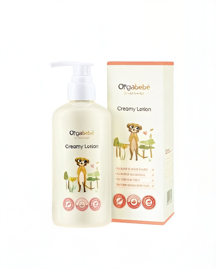 오가베베 크리미 로션을 광고하는 동영상. 베이비오일+로션+크림을 하나로! 시어버터로 촉촉한 보습감, 펌프용기로 사용이 편하며, 식물성 유래 성분만 사용해 영국 비건인증! 독일 더마테스트 인증.