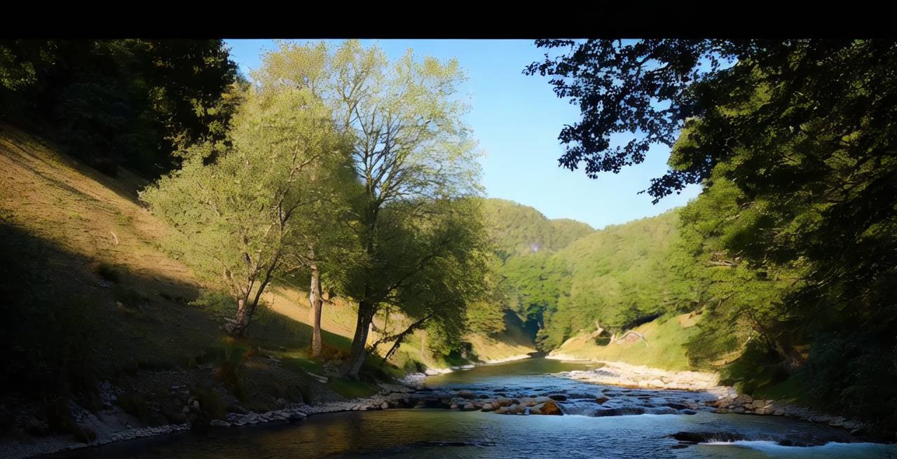 조용한 계곡의 풍경을 담은 5초 길이의 동영상 장면을 생성합니다. 화면 중앙에는 맑은 물이 흐르는 계곡이 자리잡고 있으며, 물은 부드럽게 흐르면서 작은 물결을 만들어냅니다. 계곡의 양쪽에는 푸른 나무들이 우거져 있고, 그 사이로 바위들이 자연스럽게 배치되어 있습니다. 조명은 따사로운 햇살이 나뭇잎 사이로 스며들어 부드럽고 따뜻한 분위기를 연출합니다. 햇빛이 물결에 반사되어 반짝이는 모습이 눈에 띕니다. 배경에는 자연의 소리가 들리며, 조용한 물소리와 함께 새의 지저귐이 어우러져 고요하고 평화로운 환경을 강조합니다. 카메라는 부드러운 팬닝 샷으로 시작하여 계곡의 흐름을 따라 이동하며, 물가에 가까이 다가가 물결이 바위에 부딪히는 장면을 클로즈업으로 담습니다. 마지막에는 나무 사이로 보이는 푸른 하늘을 배경으로 하여 고요한 자연의 아름다움을 강조하며 마무리합니다.