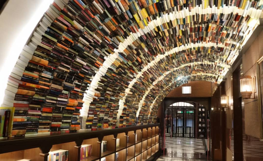 신비롭고 고풍스러운 서점. 고객이 들어서면 책장의 책 하나가 빛이 나면서 고객에게 다가간다