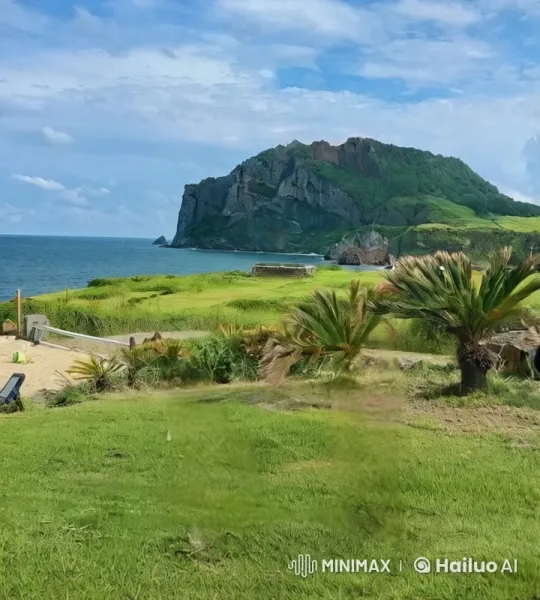 1. 오프닝 – 매혹적인 제주 장면: 드론 카메라로 제주 바다와 한라산을 한눈에 담은 전경을 촬영. 파란 하늘 아래 푸른 바다가 펼쳐지고, 한라산의 2. 맛집 – 특별한 미식 여행 장면: 제주 전통 음식점 내부, 흑돼지가 그릴 위에서 지글지글 구워지는 모습과 함께 신선한 해산물 요리를 즐기는 외국인 가족의 모습. 식탁에는 다양한 제주 전통 음식이 풍성하게 차려져 있다. 3. 액티비티 – 활기찬 하루 장면: 올레길을 걷는 여행자들이 아름다운 풍경을 감상하며 웃고 있는 모습. 이어서 말에 올라타 목장을 달리는 장면, 마지막으로 패들보드를 타고 바다를 즐기는 외국인들의 모습으로 이어진다. 4. 자연 – 감동적인 풍경 장면: 용머리해안의 웅장한 전경을 보여주며, 우도의 푸른 언덕에서 자전거를 타는 한국인 여행자의 모습과 성산일출봉에서 떠오르는 해를 감상하는 장면이 이어진다. 5. 엔딩 – 행복한 여행의 마무리 장면: 해변에서 손을 흔들며 밝은 미소를 짓고 있는 외국인 여행자의 모습. 주변에는 여유롭게 산책하는 사람들과 파도가 부서지는 모습이 보인다. 조명: 따뜻한 저녁 햇살이 여행자의 얼굴을 감싸며 포근한 분위기를 연출. 카메라 샷: 중간 샷으로 여행자의 표정을 담고, 서서히 줌 아웃하여 해변의 전경을 함께 보여준다. 자막: "제주에서 당신만의 이야기를 만들어 보세요." 전체 톤앤매너 빠른 장면 전환으로 제주도의 다양한 매력을 보여주며, 자연, 음식, 액티비티, 문화를 균형 있게 배치한다. 음악은 밝고 경쾌하지만 여운을 남기는 스타일로, 시청자에게 제주도의 매력을 깊이 각인시킨다. 여행하는사람들은 백인 흑인 인종의 외국인들