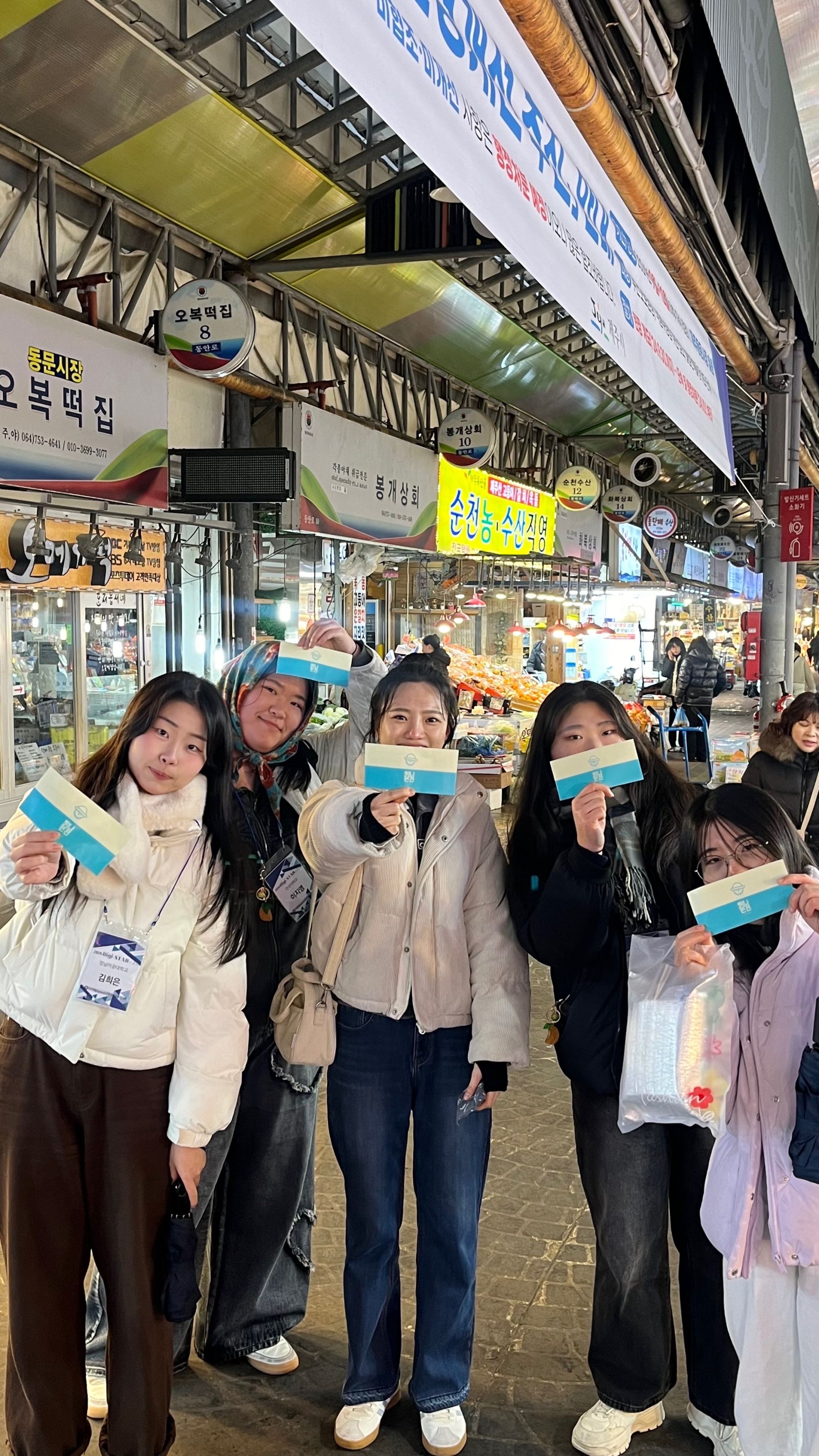제주도 동문시장에서 음식을먹고 즐기는 히스패닉 계열의 외국인들