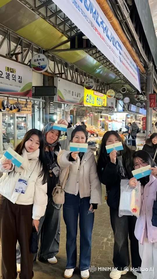 제주도 동문시장에서 다양한 음식을 즐기는 히스패닉 계열 외국인들의 모습을 담은 짧은 동영상 장면을 구체적으로 묘사합니다. 장면은 제주도 동문시장의 활기찬 분위기 속에서 시작됩니다. 배경에는 다채로운 음식 포장마차와 화려한 간판들이 즐비하게 늘어서 있고, 시장의 특색을 살린 전통적인 건물들이 보입니다. 사람들은 다양한 음식을 사기 위해 줄을 서거나, 친구들과 함께 웃으며 대화하고 있습니다. 조명은 자연광이 들어오는 낮 시간대이며, 따뜻한 햇살이 시장을 환하게 비추고 있습니다. 이로 인해 음식들의 색감이 더욱 선명하게 드러나고, 사람들의 표정이 생기 넘치게 보입니다. 카메라 샷은 처음에 넓은 앵글로 시장 전경을 담으며 시작하고, 이어서 히스패닉 외국인 그룹에게 천천히 줌인합니다. 카메라는 부드럽게 이동하며, 외국인들이 다양한 음식을 시식하는 모습과 함께 서로 웃고 대화하는 모습을 클로즈업으로 포착합니다. 그룹 중 한 명이 제주 전통 음식을 처음 맛보며 놀라워하는 표정과 함께, 다른 친구들이 그를 격려하며 웃는 장면이 강조됩니다. 이 장면은 5에서 10초 가량 지속되며, 시장의 활기와 외국인들의 즐거운 분위기가 잘 전달됩니다.