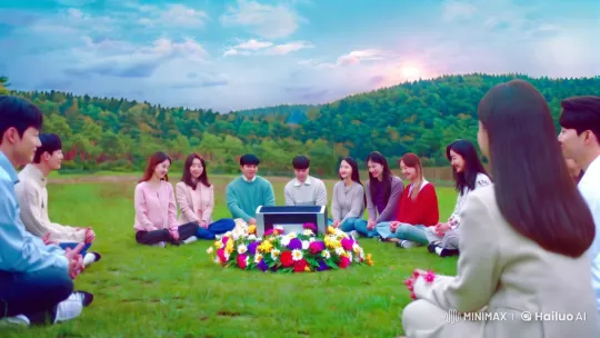 짧은 동영상 장면: 서버 기동을 위해 사람들이 모여 무사고를 기원하는 모습 장면 설명: 한적한 공원에서, 여러 명의 한국인들이 원형으로 둘러앉아 있습니다. 가운데에는 서버를 상징하는 작은 컴퓨터 장비가 놓여 있고, 그 주위로는 다양한 색상의 꽃들이 피어 있습니다. 배경에는 푸른 하늘과 흰 구름이 떠 있으며, 멀리에는 나무들이 우거진 숲이 보입니다. 조명과 분위기: 부드러운 자연광이 주변을 환하게 비추고 있으며, 따뜻한 느낌을 줍니다. 바람이 살짝 불어와 꽃들이 흔들리며, 사람들의 얼굴에 미소가 번집니다. 전체적인 분위기는 화기애애하고 희망적인 느낌이 가득합니다. 카메라 샷과 움직임: 카메라는 처음에 전체 장면을 포착하는 와이드 샷으로 시작합니다. 그 후, 천천히 줌인하여 사람들의 표정과 손모양을 클로즈업합니다. 사람들이 손을 모아 기도하는 모습과 함께, 그들의 눈빛에서 진지함과 기대감이 느껴집니다. 마지막에는 카메라가 살짝 흔들리며, 바람에 흔들리는 꽃들로 전환됩니다.