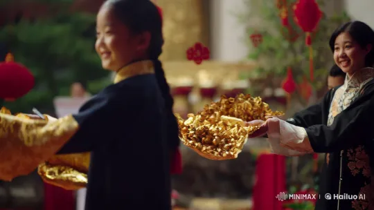 앞에 있는 사람한테 많은 금을 전해주는 모습.얼굴을 돌리지 말고 앞으로만 보며 주는 모습.기분 좋은 모습 .새해의 기쁨.표정은 귀엽게
