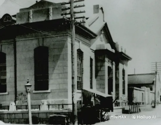1920년 함경북도 회령의 조선은행 외부 풍경을 배경으로 한 짧은 동영상 장면. 카메라는 은행 건물의 측면을 향해 있으며, 넓은 도로가 카메라 앞쪽에 펼쳐져 있다. 건물전체와 길이 한눈에 보이는 넓은 앵글 조명은 부드럽고 따뜻한 햇살이 비추고 있어, 건물의 외벽과 주변 풍경이 생동감 있게 표현된다. 바람이 살짝 불어 나뭇잎이 흔들리며, 거리의 소음이 배경에 깔린다. 이 장면은 회령의 역사적인 분위기를 잘 전달하며, 1920년대의 평화로운 일상을 느낄 수 있도록 한다.