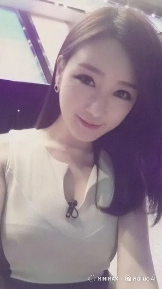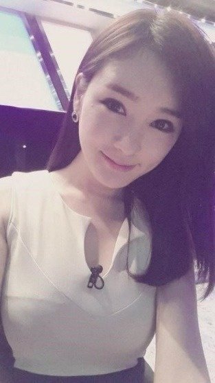 방송국 촬영장에서 한 아나운서 여성이 셀카를 찍고 있다.