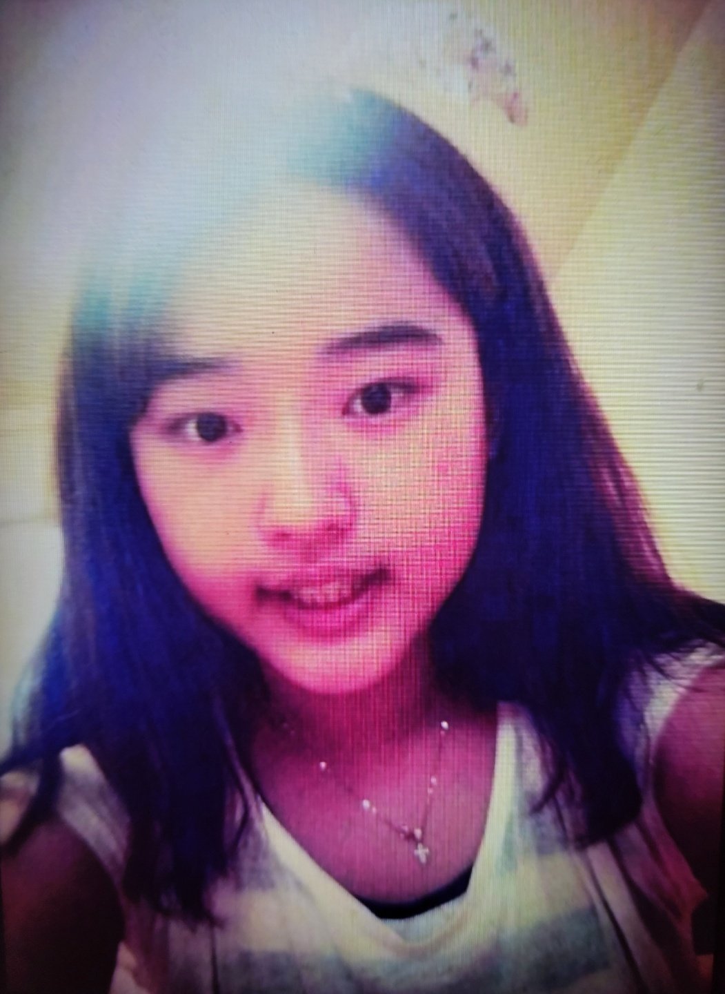 한국인 20대 여성이 하얀색 나시티를 입은 채 무표정으로 카메라를 바라보고, 눈을 감으면서 길게 방언기도를 하면서 셀카를 찍고 있다.