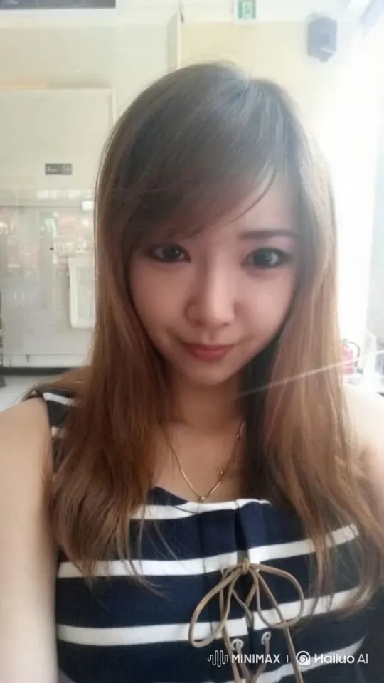 방 안에서 한국인 20대 여성이 남색 나시티를 입은 채 무표정으로 카메라를 바라보고, 눈을 감으면서 주여~하면서 간절하게 방언기도를 하면서 셀카를 찍고 있다.