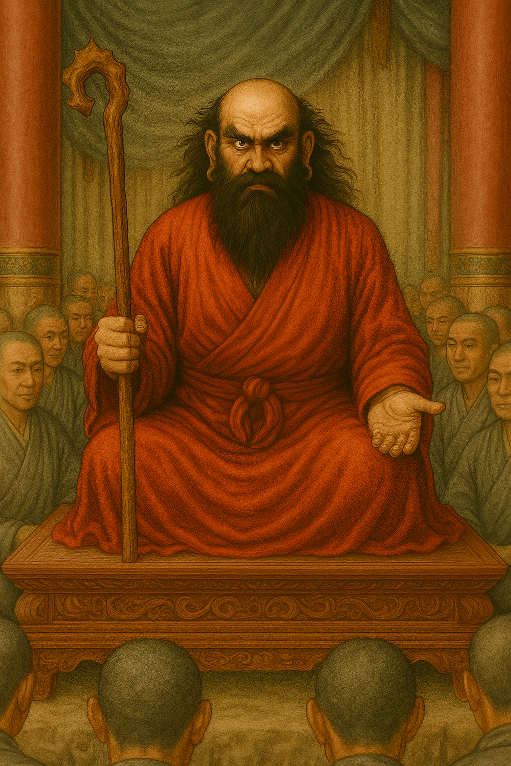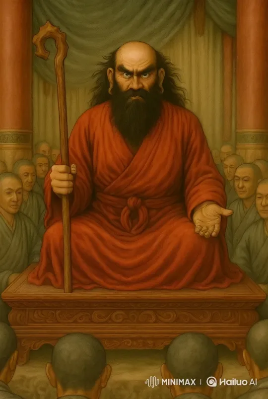 어두운 새벽, 안개가 자욱한 소나무 숲 속에 위치한 고즈넉한 사원 앞에 서 있는 젊은 한국인 스님이 보인다. 스님은 회색 로브를 입고 있으며, 그의 표정은 사색에 잠긴 듯 진지하다. 카메라는 스님의 얼굴을 클로즈업으로 잡아, 그의 눈빛과 미세한 입술의 움직임을 강조한다. 주변의 소나무들은 안개에 감싸여 신비로운 분위기를 자아내며, 부드러운 빛이 스며드는 아침의 첫 햇살이 나무 사이로 비춰들어 온화한 느낌을 더한다. 카메라는 천천히 스님의 시선을 따라 움직이며, 멀리 보이는 숲의 경치를 포착한다. 스님은 조용히 "그 황금 물고기는 그물이 빠져나간 후 무엇을 먹을까?"라는 질문을 마음속으로 읊조리며, 화면은 다시 그의 표정으로 돌아온다. 이 장면은 5초에서 10초 정도의 길이로, 전체적으로 차분하고 사색적인 분위기를 유지하며, 자연의 소리와 함께 스님의 내면의 질문이 울려 퍼지는 듯한 느낌을 준다.